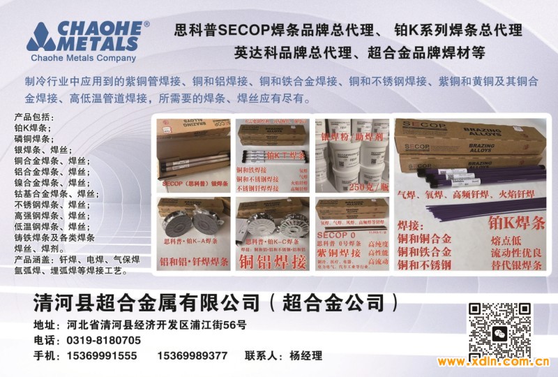 制冷行業(yè)中應(yīng)用到的紫銅管焊接、銅和鋁焊接、銅和鐵合金焊接、銅和不銹鋼焊接、紫銅和黃銅及其銅合