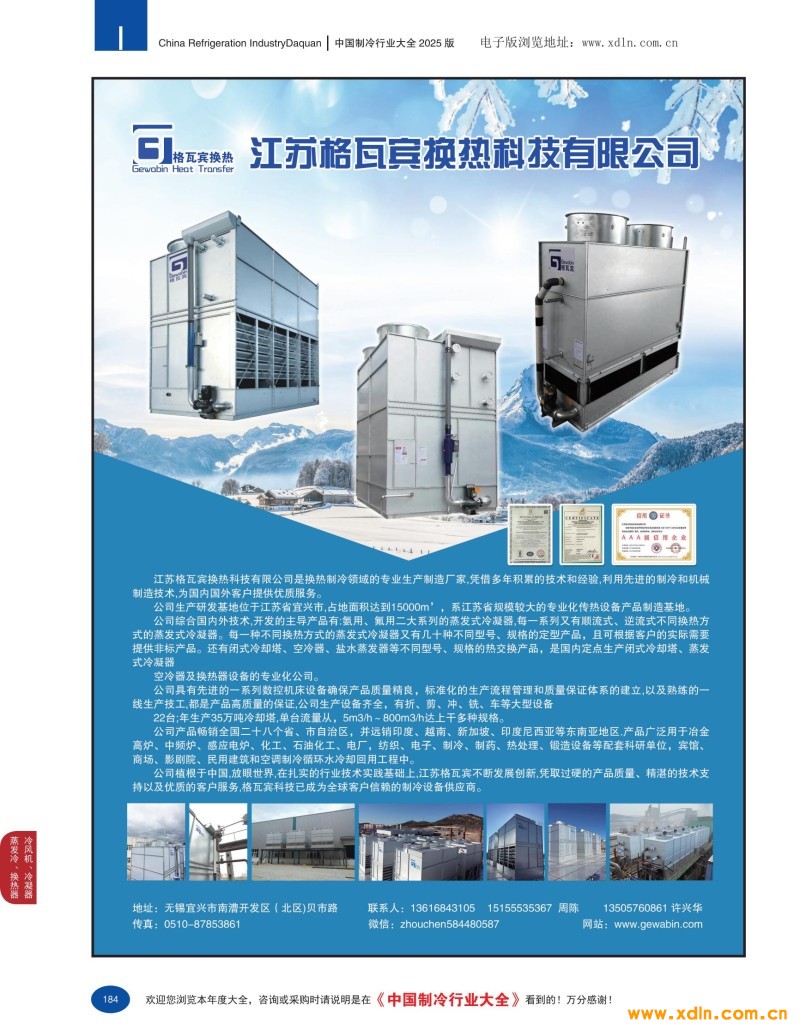 江蘇格瓦賓換熱科技有限公司是專注于換熱制冷領(lǐng)域的生產(chǎn)制造廠家,憑借多年積累的技術(shù)和經(jīng)驗(yàn),利用優(yōu)良的制冷和機(jī)械制造技術(shù),為國(guó)內(nèi)國(guó)外客戶提供優(yōu)良服務(wù)。