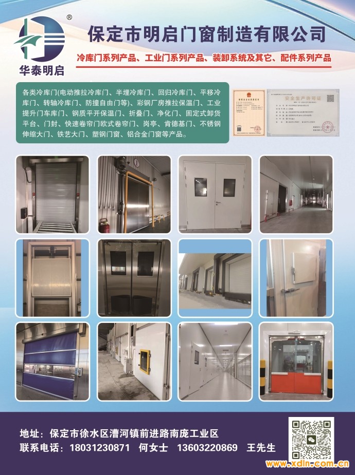 各類(lèi)冷庫(kù)門(mén)(電動(dòng)推拉冷庫(kù)門(mén)、半埋冷庫(kù)門(mén)、回歸冷庫(kù)門(mén)、平移冷庫(kù)門(mén)、轉(zhuǎn)軸冷庫(kù)門(mén)、防撞自由門(mén)等)、彩鋼廠房推拉保溫門(mén)、工業(yè)提升門(mén)車(chē)庫(kù)門(mén)、鋼質(zhì)平開(kāi)保溫門(mén)、折疊門(mén)、凈化門(mén)、固定式卸貨平臺(tái)、門(mén)封、快速卷簾門(mén)歐式卷簾門(mén)、崗?fù)?、肯德基門(mén)、不銹鋼伸縮大門(mén)、鐵藝大門(mén)、塑鋼門(mén)窗、鋁合金門(mén)窗等產(chǎn)品。