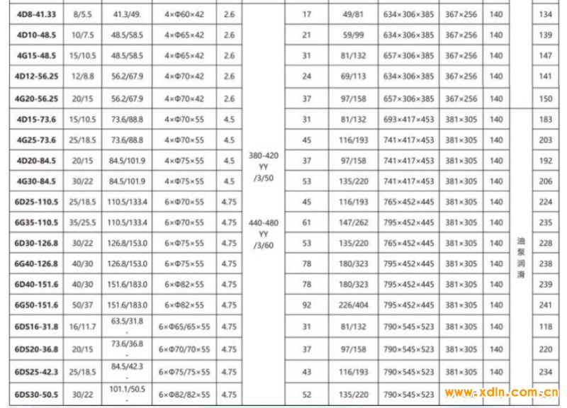 型號 4D15-73.6 4G25-73.6 4D20-84.5 4G30-84.5