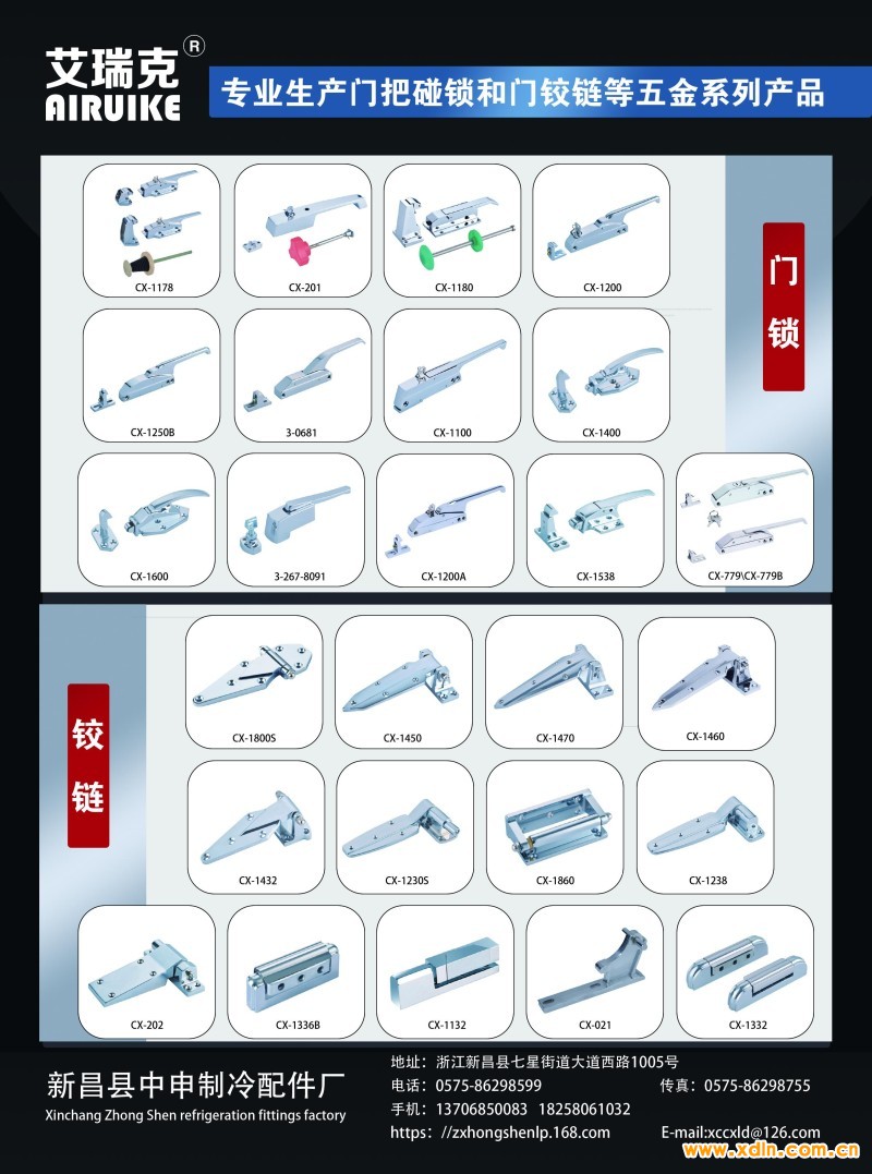新昌縣中申制冷配件廠是機械門鎖、冷庫門鎖、冷庫鉸鏈等產(chǎn)品專業(yè)生產(chǎn)加工的私營獨資企業(yè),公司總部設(shè)在新昌縣七星街道大道西路1005號,新昌縣中申制冷配件廠擁有完整、科學的質(zhì)量管理體系。新昌縣中申制冷配件廠的誠信、實力和產(chǎn)品質(zhì)量獲得業(yè)界的認可。歡迎各界朋友蒞臨新昌縣中申制冷配件廠參觀、指導和業(yè)務(wù)洽談。