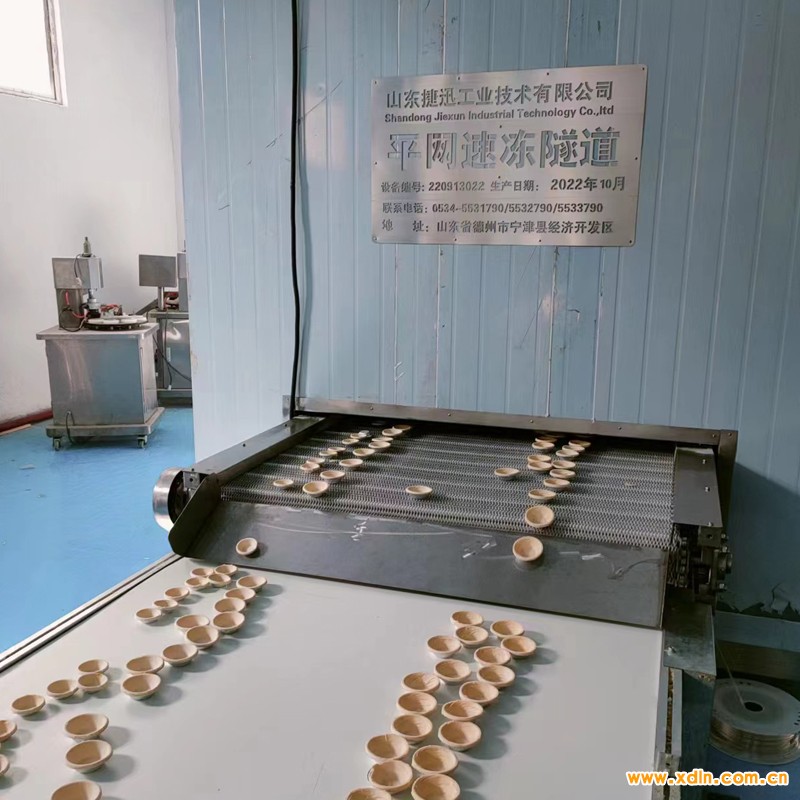 山東聊城,客戶生產(chǎn)蛋撻皮廠家,之前速凍庫冷凍效率低,產(chǎn)量小,想提高生產(chǎn)產(chǎn)能,公司經(jīng)過實(shí)地考察后,決定配置300公斤產(chǎn)量的速凍機(jī)速凍,-35度,速度時(shí)間在4分鐘左右,大大提高了生產(chǎn)效率